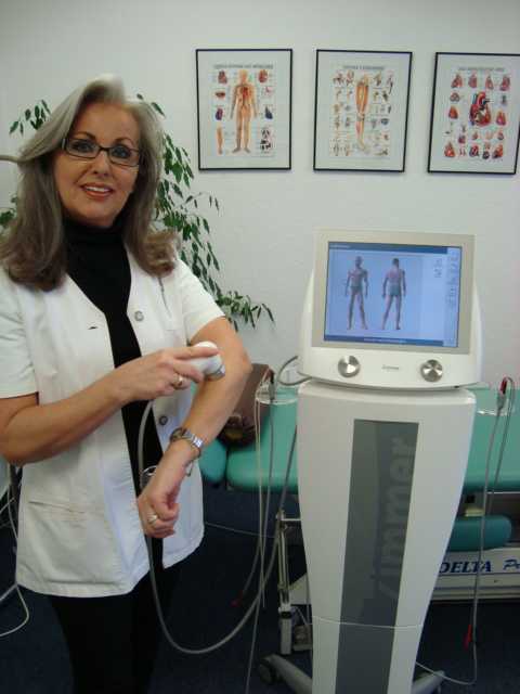 energiereichem Licht, die hohe Lichtmengen in das Gewebe bringt. Dadurch werden die Schmerzrezeptoren stimuliert, die Durchblutung im Gewebe gefördert und nachhaltig die Heilung angeregt. Doppelt wirksam durch zwei unterschiedlich wirkende Wellenlängen wird der Laser für die Oberflächen- und Tiefenbehandlung von Verspannungen, besonders aber in der Schmerzbehandlung z.B. : Rückenschmerzen, Knieschmerzen, Karpaltunnelsyndrom, Tennisarm, Golfarm, Sehnenentzündung, Arthritis, Verstauchungen, Schleimbeutelentzündung, Muskelriss, Knochenbrüchen usw., eingesetzt. |